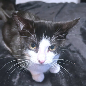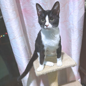 Pippa is a spayed female Tuxedo cat, born on July 1, 2025. Pippa is a striking black-and-white tuxedo beauty with brilliant golden eyes and elegant white whiskers that give her a truly unforgettable look. She has a thoughtful, observant nature and a gentle curiosity about the world around her, often taking everything in before making her move. Pippa has a calm, steady presence and would do well in a home that appreciates a cat with quiet confidence and a soft, affectionate side. She’s the kind of companion who will sit nearby, keep you company, and slowly win your heart with…