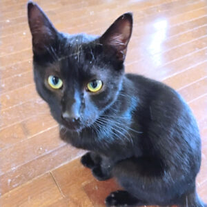 Darby is a beautiful black spayed female kitten, born on September 22, 2025. She has stunning golden eyes, very soft fur, and a great disposition. Darby was found as a stray and had a couple of weeks’ recuperation before she was in full swing, but now she is ready for her forever home! Indoor cat only! The adoption fee is 50. HIJ