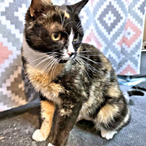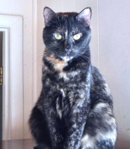 Joyous is loving spayed female tortoiseshell, DOB June 22, 2024. She has a striking elegance about her. Joyous has had to wait a long time to find a family of her own. In the meantime, she is a friendly member of her foster group and gets along well with dogs and cats alike. Indoor cat only! The adoption fee is $25. HIJ