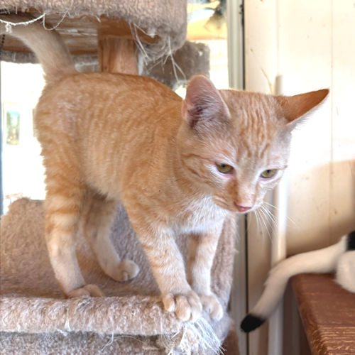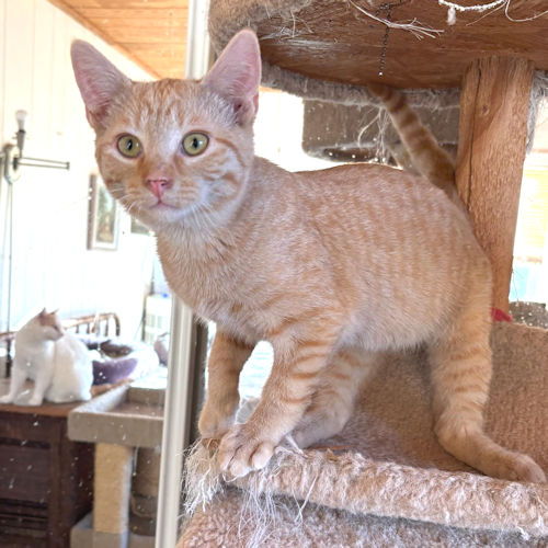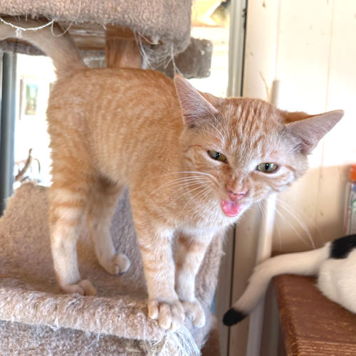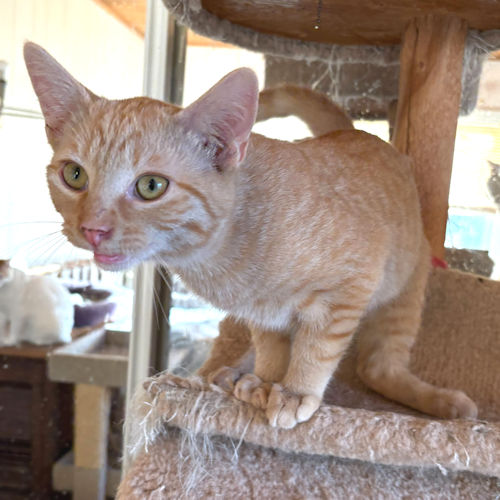 Larry is a neutered male orange tabby, born on October 10, 2025. Larry is a very loving kitty, always ready for attention and play. He is not shy at all, just looking to make you smile! He is a beautiful orange tabby, up to date on vaccines, ready for his forever home! Indoor cat only! The adoption fee is $50. HIJ