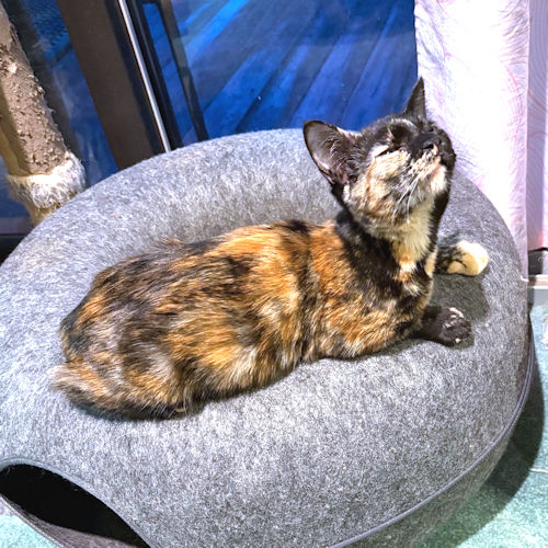 Polly is beautiful female tortie, born around July 1, 2025. She has blossomed as she has grown. She has a very sweet personality and loves to be held. Her orange coloring stands out and she has a lot of beautiful black as well. Indoor cat only! The adoption fee is $50. HIJ